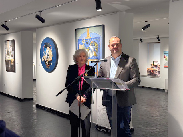 14.01.2025.- El diputado de Cultura, David Mingo, ha inaugurado, en la Torre de los Anaya, la exposición “Dos tiempos, dos espacios”, una antología dedicada a la artista salmantina Marina Gómez, pintora y escultora nacida en Alaraz, cuya obra transita con naturalidad entre el realismo y la figuración.
