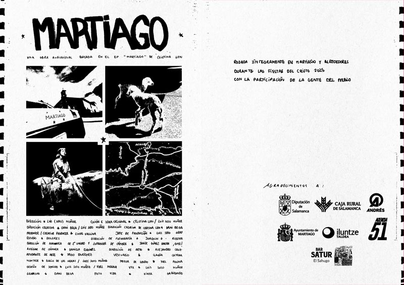 El Área de Cultura de la Diputación de Salamanca colabora en este proyecto junto a otras entidades e instituciones que han hecho posible su desarrollo y difusión. MARTIAGO se estrenará el 22 de enero en YouTube y se suma a una línea de creaciones que conectan música, cine y territorio, reforzando el valor de las prácticas culturales vinculadas al ámbito rural y a la participación de la comunidad local.